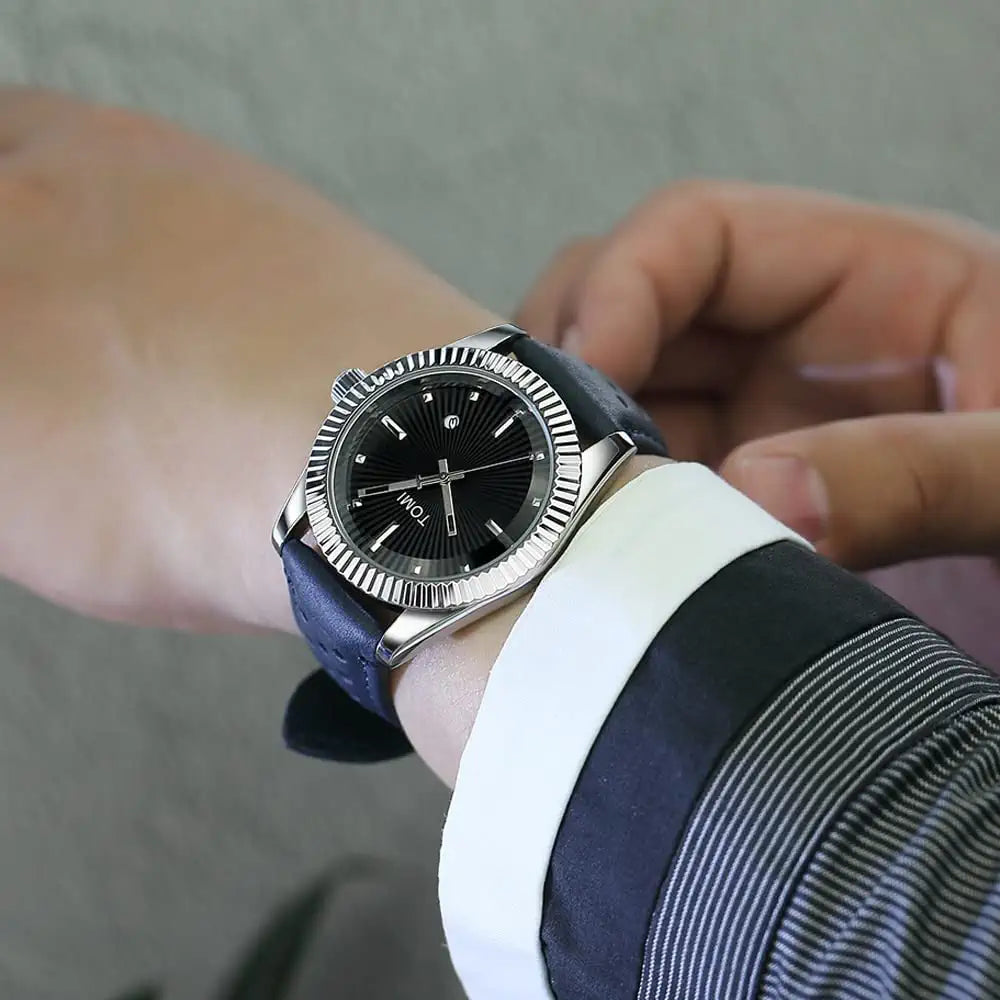 TOMI T-098 Men's Watch Date Quartz Round Shape Dial Leather Straps