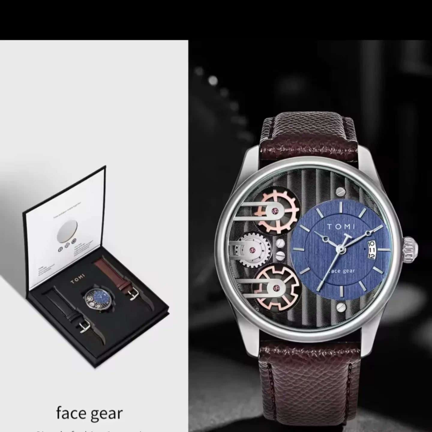 TOMI T-106 Face Gear Dual Strap Luxury Watch